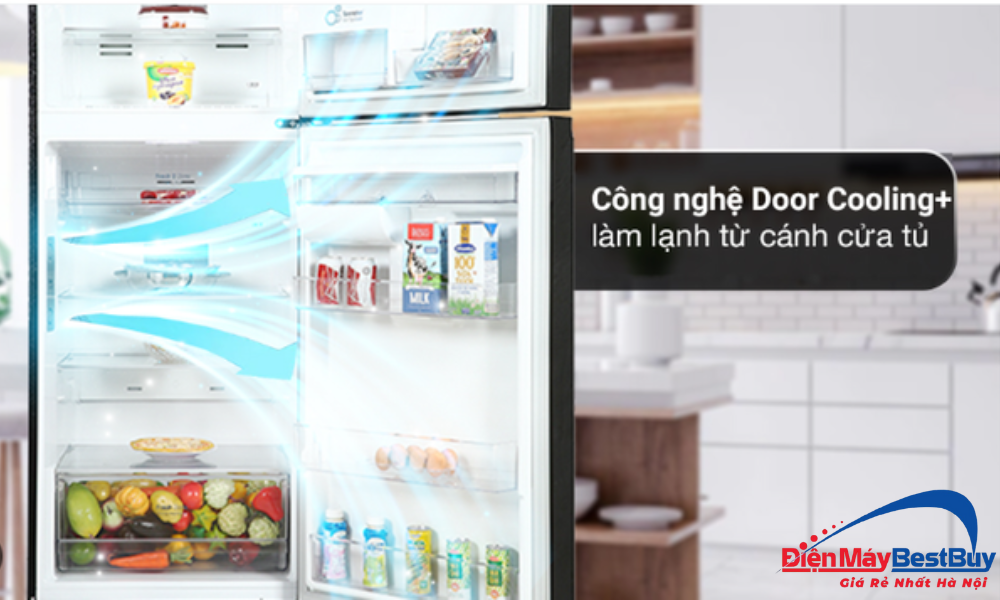 DoorCooling+™ là công nghệ làm lạnh được LG tích hợp nhằm tạo luồng khí lạnh thổi trực tiếp từ phía cửa tủ, giúp các vị trí thường xuyên bị thiếu lạnh được làm mát nhanh chóng. Nhờ đó, thực phẩm được đặt gần cửa luôn giữ được độ tươi ngon và nhiệt độ trong tủ được phục hồi nhanh hơn mỗi khi mở cửa.