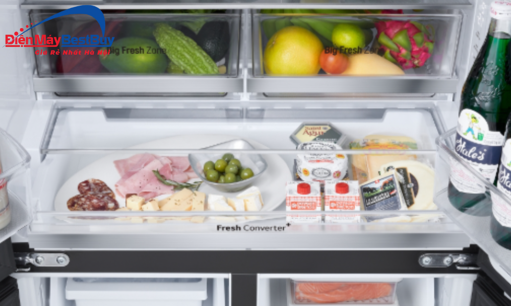 Tủ lạnh LG F58BGD được trang bị ngăn Fresh Converter+ tiên tiến, cho phép người dùng tùy chỉnh nhiệt độ trong ngăn theo ba mức chuyên biệt -3°C, 0°C và 3°C, mang đến khả năng bảo quản tối ưu cho từng nhóm thực phẩm.