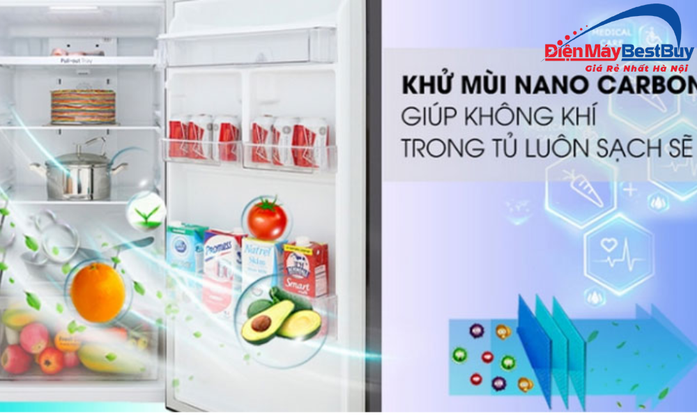 Tủ lạnh LG T21BG còn được trang bị công nghệ khử mùi Nano Carbon – giải pháp giúp loại bỏ mùi hôi khó chịu do thực phẩm gây ra, đặc biệt là các món tươi sống như thịt cá, hải sản hoặc đồ ăn nhiều gia vị. Bộ lọc Nano Carbon hoạt động dựa trên các hạt carbon siêu nhỏ có khả năng hấp thụ và phân giải mùi hiệu quả, giúp không khí bên trong tủ luôn sạch thoáng và hạn chế sự phát triển của vi khuẩn.
