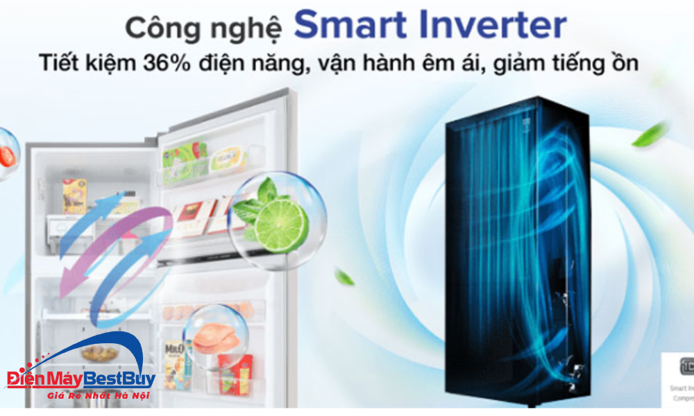 Máy nén Smart Inverter là một trong những yếu tố nổi bật của LG T21BG. Công nghệ Smart Inverter cho phép máy nén tự điều chỉnh tốc độ hoạt động tùy theo lượng thực phẩm trong tủ, giúp duy trì nhiệt độ ổn định và giảm tối đa hao phí điện năng. Nhờ đó, tủ vận hành cực kỳ êm ái, hạn chế tiếng ồn, phù hợp cho những căn hộ cần sự yên tĩnh hoặc gia đình đặt tủ gần phòng ngủ.