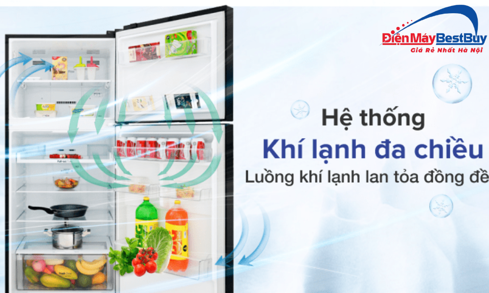 Hệ thống làm lạnh đa chiều của LG giúp hơi lạnh phân bố đồng đều khắp các ngăn tủ, đảm bảo thực phẩm ở mọi vị trí đều giữ được độ tươi ngon. Bạn không cần lo thực phẩm đặt sâu bên trong bị lạnh không đều hoặc dễ hư hỏng. Việc luân chuyển khí lạnh liên tục và ổn định cũng giúp giữ trọn hương vị tự nhiên của thực phẩm trong suốt thời gian bảo quản.