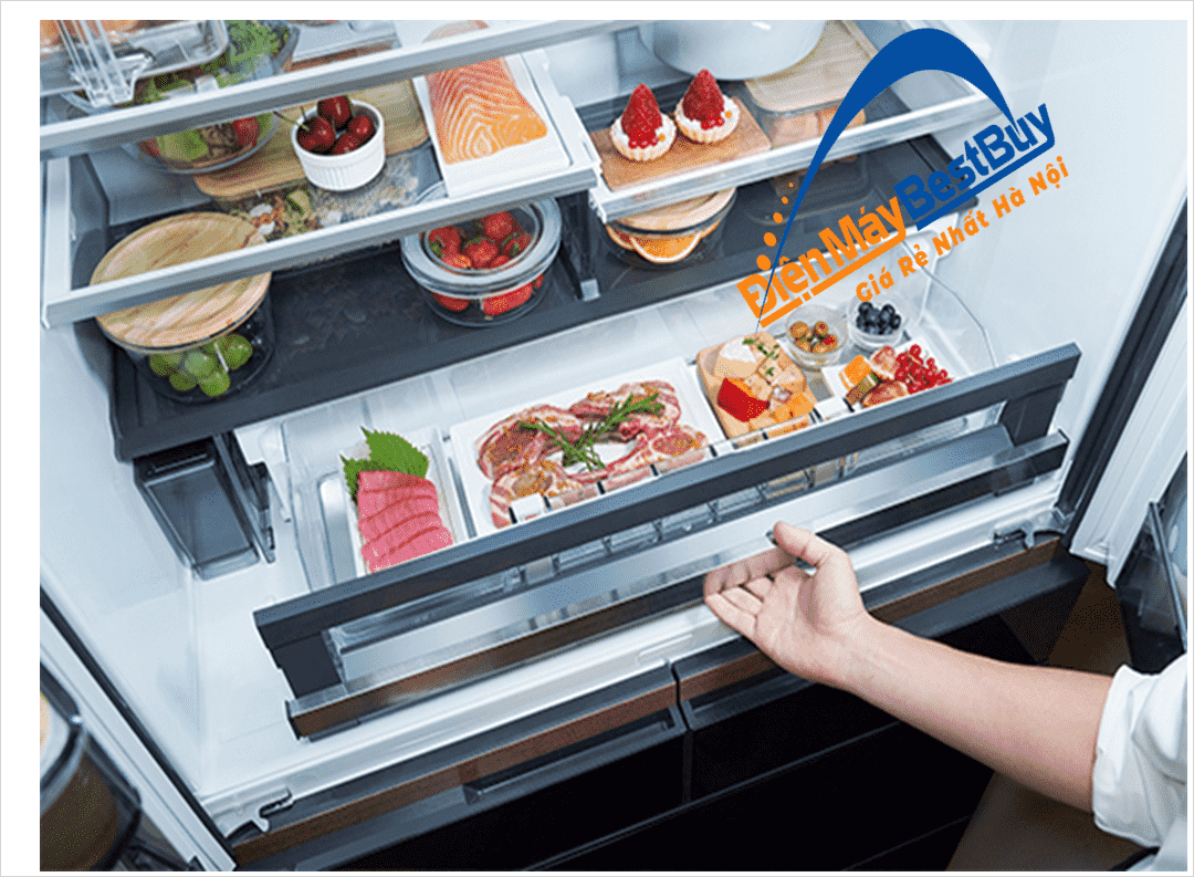 🔥 Tủ lạnh Hitachi R-GW670TV(XM) được thiết kế 6 cửa với các ngăn riêng biệt cực kì linh hoạt, thuận tiện cho việc bố trí và phân loại thực phẩm.
