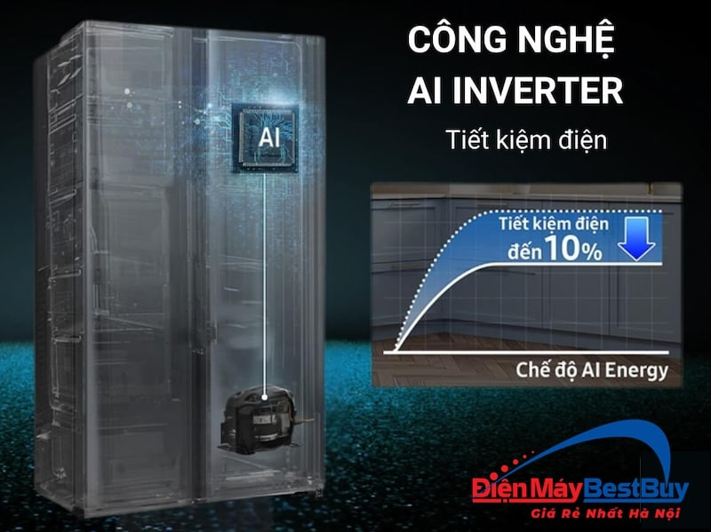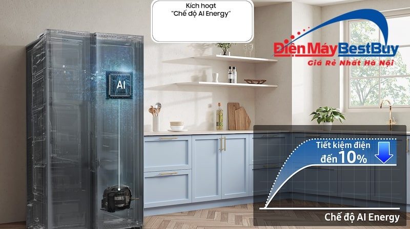 Chế độ AI Energy là một giải pháp quản lý điện năng thông minh dựa trên AI. Hệ thống sẽ chủ động phân tích thói quen sử dụng và ước tính hóa đơn điện. Khi chi phí dự kiến vượt mục tiêu, tủ sẽ đề xuất bạn kích hoạt chế độ tiết kiệm. Giải pháp này có thể giúp giảm thêm tới 10% điện năng tiêu thụ.