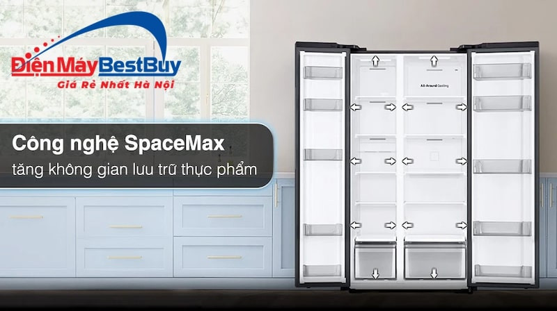 Công nghệ SpaceMax™ là một cuộc cách mạng về thiết kế không gian. Bằng cách sử dụng vật liệu cách nhiệt hiệu suất cao và làm mỏng viền tủ. Tủ lạnh giải phóng thêm đến 100L dung tích lưu trữ quý giá. Điều tuyệt vời là dung tích bên trong tăng lên mà kích thước bên ngoài vẫn giữ nguyên.