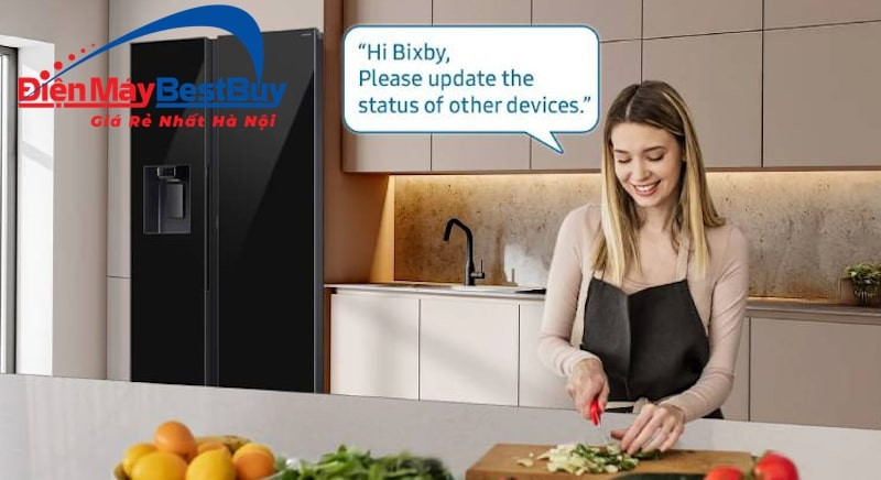 Tủ lạnh được tích hợp trợ lý ảo Bixby, cho phép bạn điều khiển bằng giọng nói. Bạn có thể dễ dàng điều chỉnh cài đặt hoặc chọn các chức năng mà không cần dùng tay. Bixby có khả năng hiểu ngữ cảnh cuộc hội thoại và nhận nhiều lệnh trong cùng một câu. Điều này mang lại trải nghiệm rảnh tay, liền mạch và thông minh ngay tại căn bếp.
