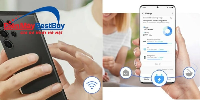Tiện ích SmartThings Energy giúp bạn theo dõi mức tiêu thụ điện năng theo thời gian thực. Nó cung cấp các mẹo sử dụng điện hiệu quả và so sánh dữ liệu với tháng trước. Bạn có thể tự đặt ra định mức tiêu thụ điện hàng tháng cho gia đình mình. Hệ thống sẽ gửi cảnh báo nếu phát hiện mức sử dụng đang vượt mục tiêu đã đặt.