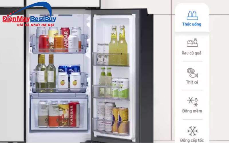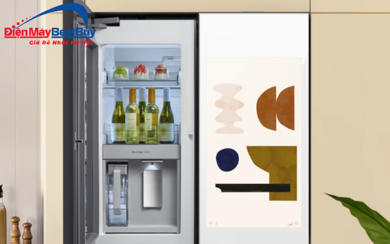 Beverage Center có thiết kế tinh tế, giúp hạn chế thất thoát hơi lạnh, đồng thời giữ cho khu vực ngăn mát luôn gọn gàng. Đây là chi tiết nhỏ nhưng tạo nên sự khác biệt rõ rệt trong trải nghiệm sử dụng hàng ngày, đặc biệt với những gia đình thường xuyên dùng nước lạnh hoặc đồ uống.