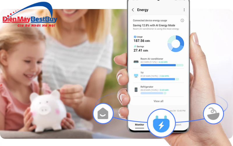 - Kết nối SmartThings: cho phép người dùng quản lý và theo dõi hoạt động của tủ lạnh thông qua điện thoại thông minh. Bạn có thể kiểm tra nhiệt độ, điều chỉnh chế độ hoạt động hoặc nhận thông báo khi có sự cố, ngay cả khi không ở nhà.