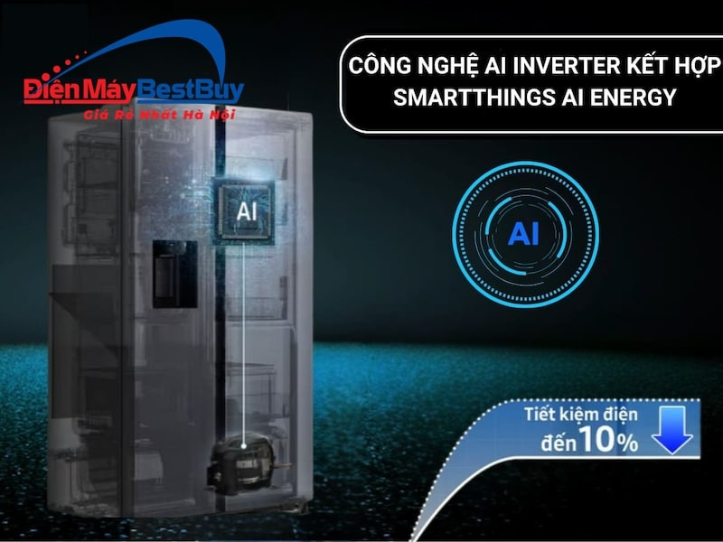Tủ lạnh Samsung RS70F65Q3TSV sử dụng máy nén AI Inverter hiện đại, có khả năng tự động điều chỉnh công suất hoạt động dựa trên thói quen sử dụng và lượng thực phẩm bên trong tủ. Nhờ đó, tủ lạnh vận hành êm ái, giảm rung ồn và kéo dài tuổi thọ động cơ.