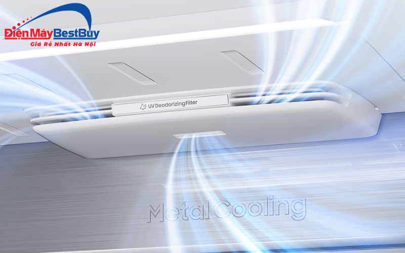 Hệ thống lọc tích hợp tia UV giúp khử mùi và hạn chế vi khuẩn phát sinh bên trong tủ. Nhờ đó, không khí bên trong tủ lạnh luôn sạch sẽ, hạn chế mùi khó chịu khi bảo quản nhiều loại thực phẩm khác nhau. Đây là yếu tố quan trọng giúp giữ trọn hương vị và chất lượng thực phẩm trong suốt thời gian lưu trữ.