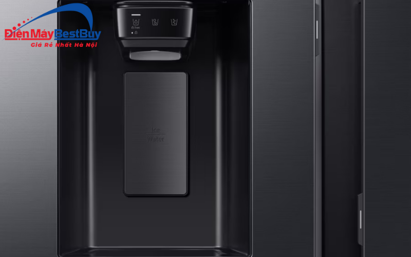 - Lấy nước và đá bên ngoài mà không cần mở cửa tủ, giúp hạn chế thất thoát hơi lạnh và tiết kiệm điện. Bình chứa nước bên trong đảm bảo an toàn và thuận tiện cho việc vệ sinh.