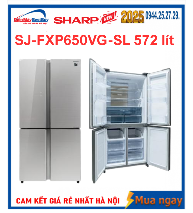 Thông số kỹ thuật Tủ lạnh Sharp Inverter 572 lít SJ-FXP650VG-SL