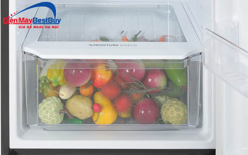 Ngăn Moisture Shield với nắp đóng kín có tác dụng ngăn hơi lạnh thổi trực tiếp vào rau củ. Nhờ đó, các loại rau củ sẽ giữ được độ ẩm, không bị héo nhanh và giữ được màu sắc tươi hơn.