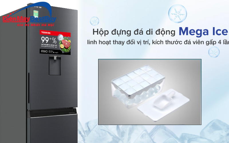 - Hộp đá di động Mega Ice cho phép làm và lấy đá dễ dàng. Hộp đá có thể tháo rời linh hoạt, giúp việc vệ sinh và sử dụng thuận tiện hơn.