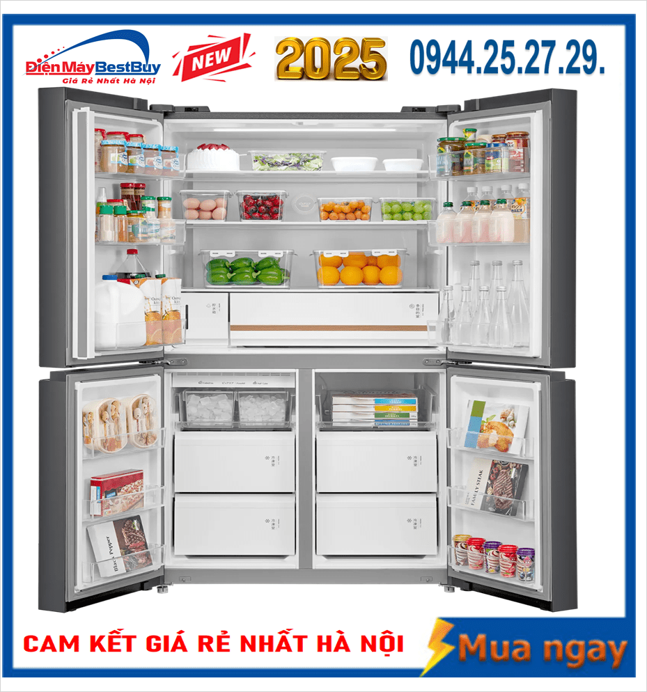 Kiểu dáng Side by Side kết hợp nhiều cửa mở giúp việc lấy và sắp xếp thực phẩm trở nên thuận tiện hơn, đồng thời giảm thất thoát hơi lạnh mỗi lần mở tủ. Các đường nét thiết kế vuông vức, tối giản nhưng vẫn toát lên sự cao cấp, phù hợp với những căn bếp rộng, căn hộ cao cấp hay nhà phố hiện đại.